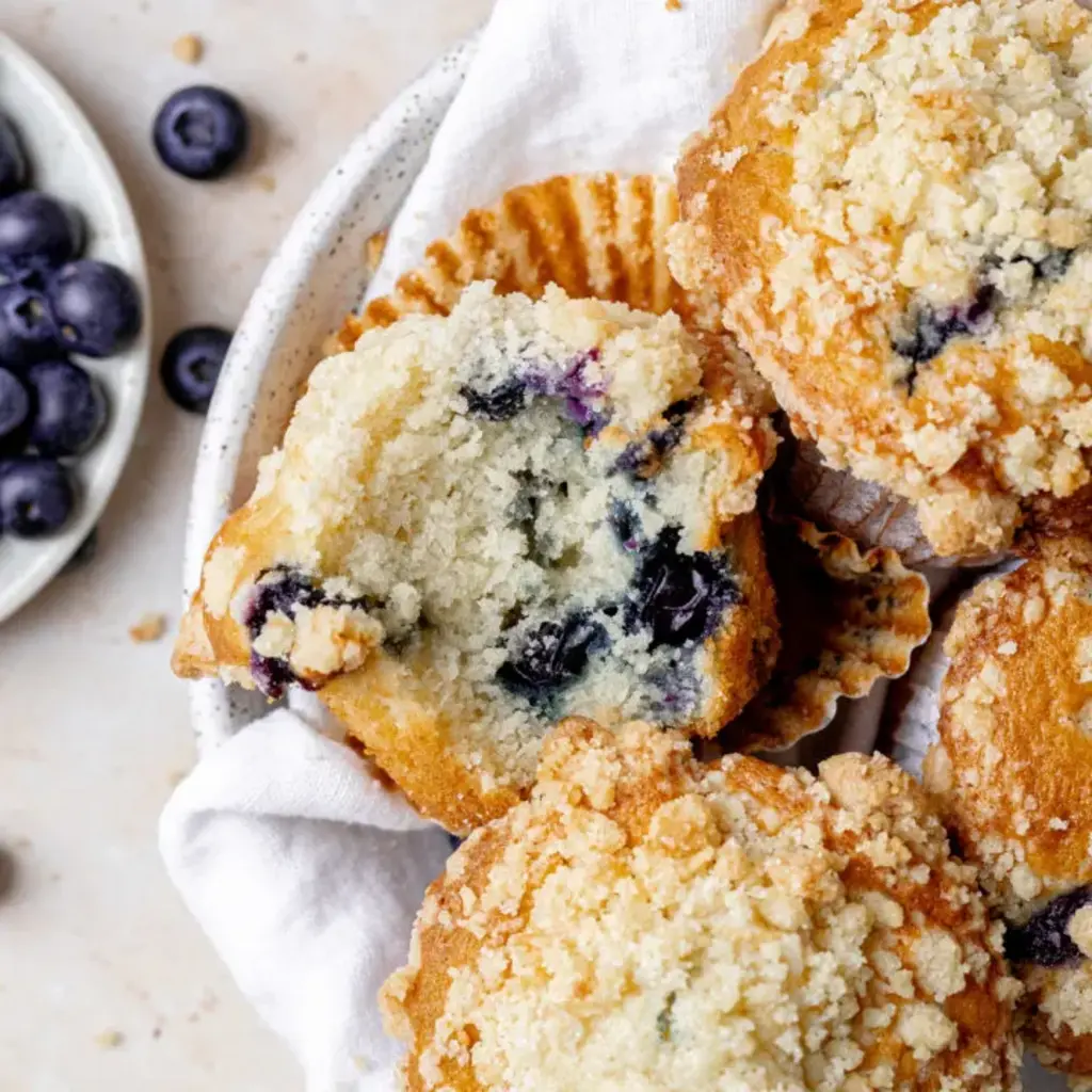 These are the best and softest Bakery Style Blueberry Muffins. These tall muffins has a streusel crumb topping giving a perfect crunch to the soft muffins!