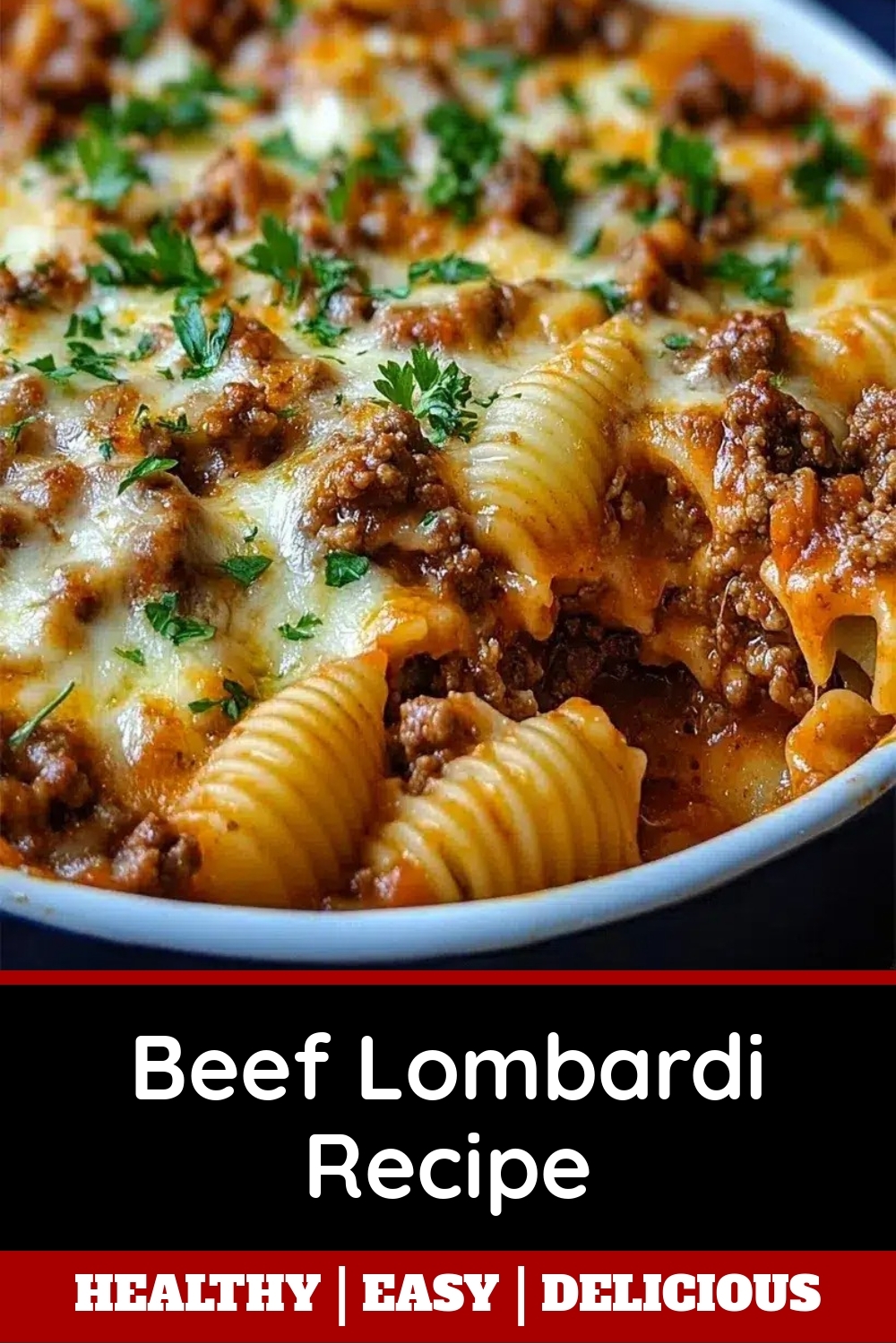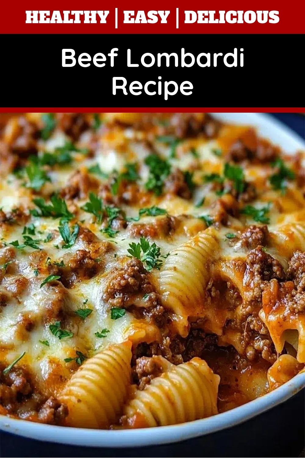 To make Beef Lombardi Recipe from scratch, brown ground beef with onions and garlic, then layer with cooked noodles, tomato sauce, and cheese. Bake until bubbly and golden. The dish comes together in about an hour and makes a perfect family dinner.