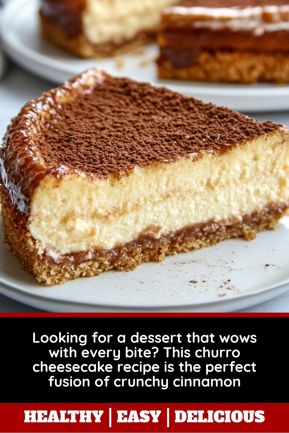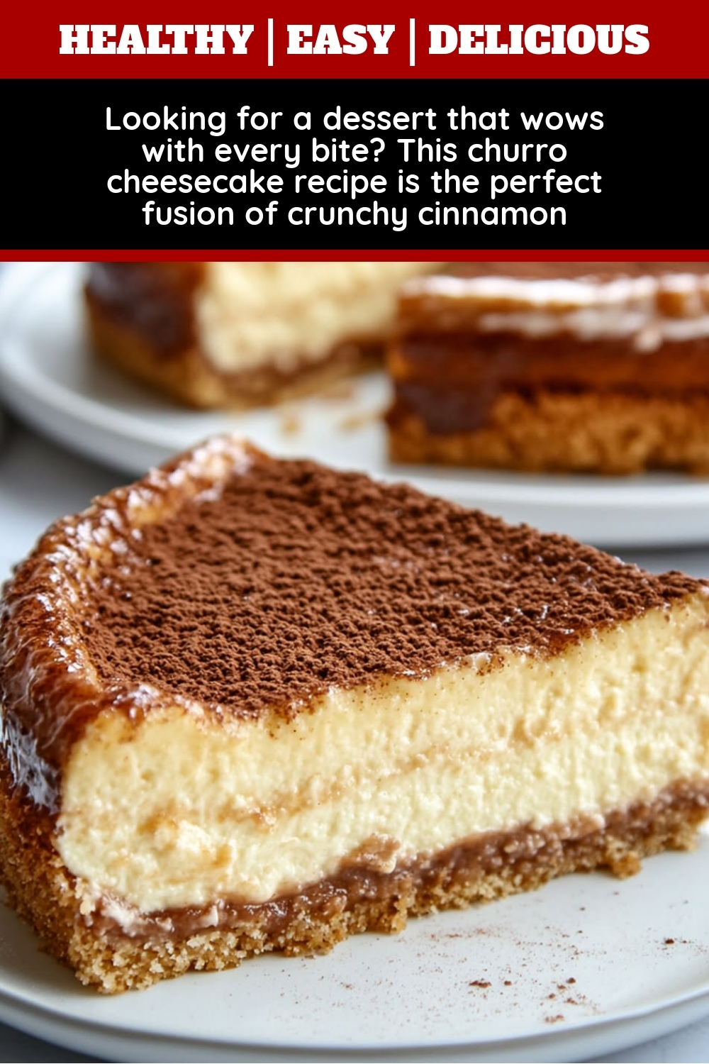 A delicious fusion of crunchy cinnamon churros and creamy cheesecake, perfect for dessert lovers.