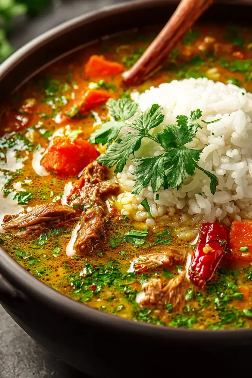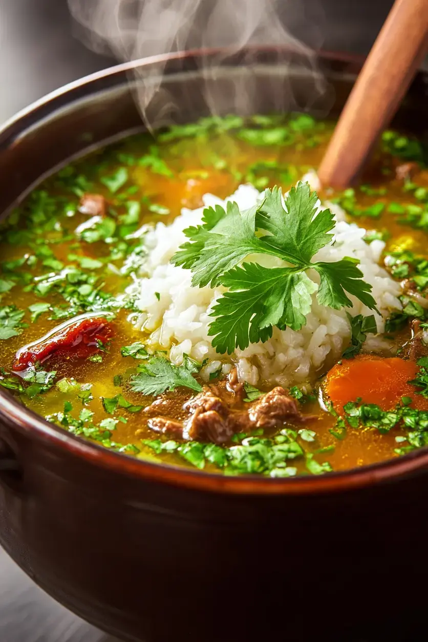 Creamy Beef Cilantro Soup with Rice A Comforting Bowl of Flavor and Warmth