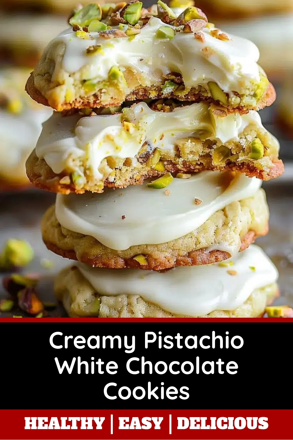 Deliciously soft and chewy cookies with a rich pistachio flavor and creamy white chocolate chunks.