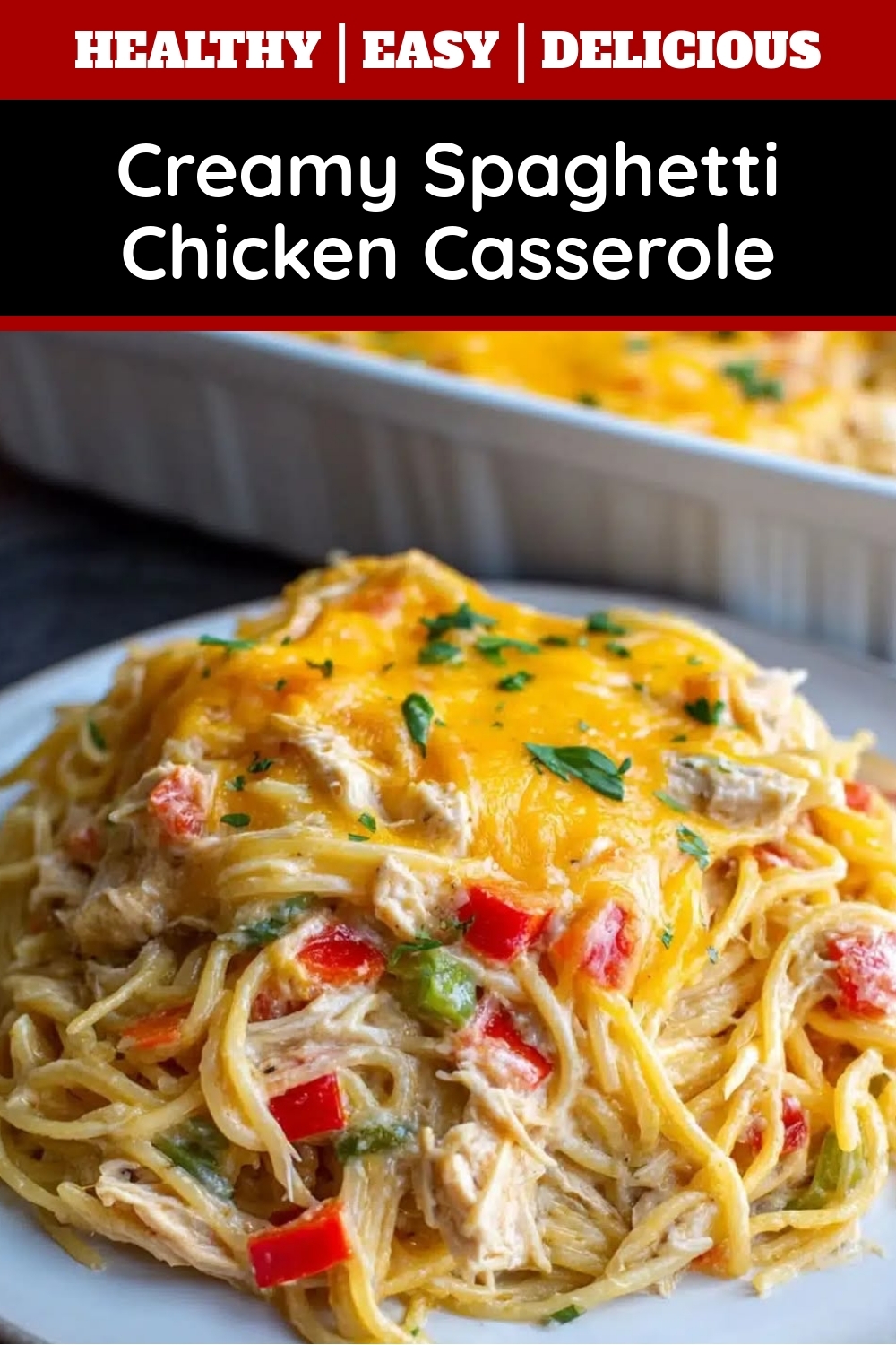Yes! Assemble the Creamy Spaghetti Chicken Casserole up to 24 hours in advance and refrigerate it. Just bake it when ready, adding a few extra minutes if it’s cold from the fridge.