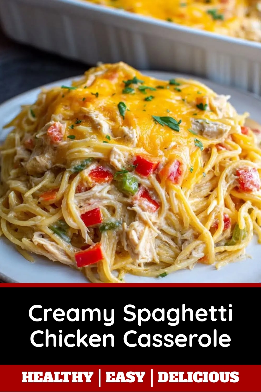 For a cozy family dinner, scoop generous portions of Creamy Spaghetti Chicken Casserole into warm bowls and top with fresh parsley or grated Parmesan. Alternatively, serve it straight from the baking dish for a rustic, shareable centerpiece at potlucks or holiday gatherings. To elevate the presentation, garnish with a sprinkle of red pepper flakes or a drizzle of olive oil for a pop of color. Since this dish is hearty and comforting, it also works beautifully for casual weeknight meals or Sunday brunch with friends.