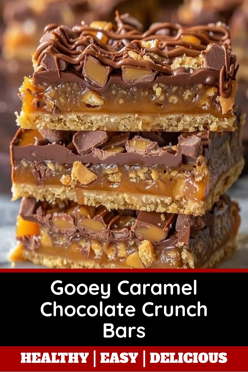 Gooey Caramel Chocolate Crunch Bars deliver a symphony of textures and flavors in every bite. First, your teeth sink through a crisp, buttery base, followed by a luscious layer of velvety caramel that stretches with each pull. The rich chocolate topping melts on your tongue, while toasted nuts or crunchy cereal add a satisfying contrast. Warm vanilla and sea salt heighten the sweetness, making each bite fragrant and irresistible. Whether you savor it slowly or devour it in seconds, Gooey Caramel Chocolate Crunch Bars balance chewy, creamy, and crunchy perfectly.