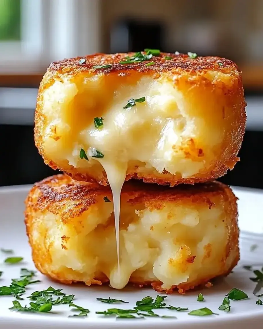 These gooey mashed potato cheese puffs are crispy on the outside and creamy inside, made with simple ingredients for a comforting snack or side dish.