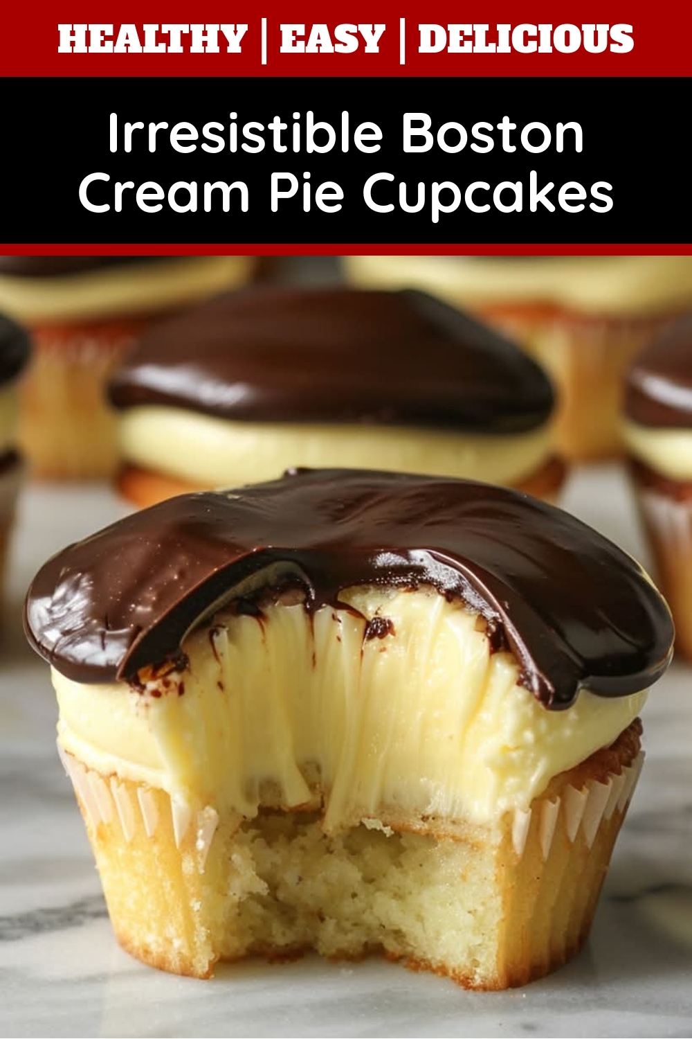 Irresistible Boston Cream Pie Cupcakes deliver a decadent symphony of flavors and textures. The fluffy vanilla sponge cake melts in your mouth, while the rich custard filling oozes with creamy, velvety smoothness. Topped with a glossy chocolate ganache, each bite offers a perfect balance of sweet and slightly bitter notes. The aroma alone—warm vanilla and deep cocoa—will have you reaching for seconds. Thanks to the custard’s luscious thickness and the ganache’s silky shine, these cupcakes feel indulgent yet light. Irresistible Boston Cream Pie Cupcakes truly shine because every layer complements the next, creating a dessert that’s impossible to resist.
