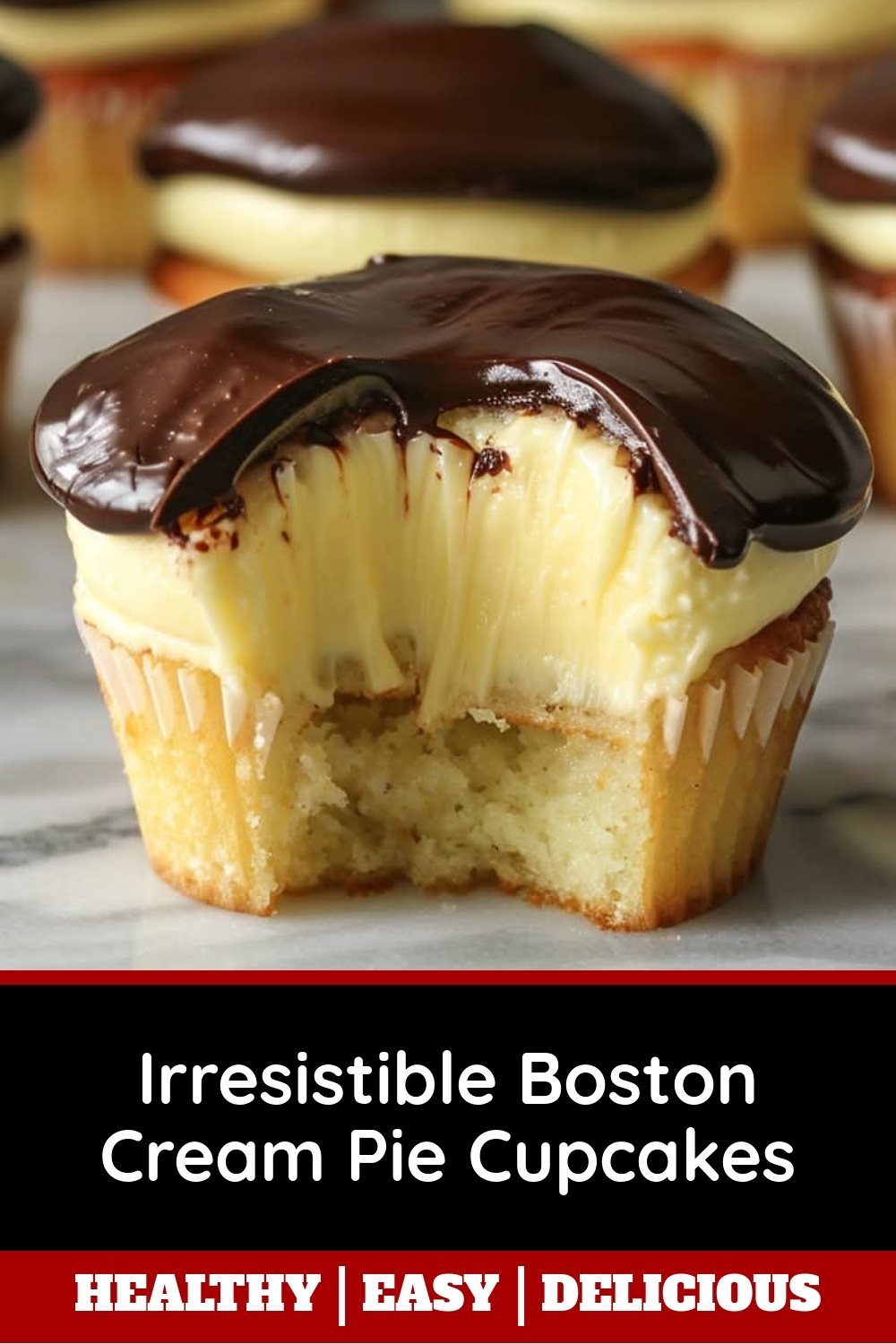 Irresistible Boston Cream Pie Cupcakes combine moist vanilla cake, rich custard filling, and a silky chocolate ganache topping. The contrast of textures and flavors—creamy, sweet, and slightly bitter—creates a treat that’s hard to resist. They’re a handheld version of the classic dessert, making them even more tempting.