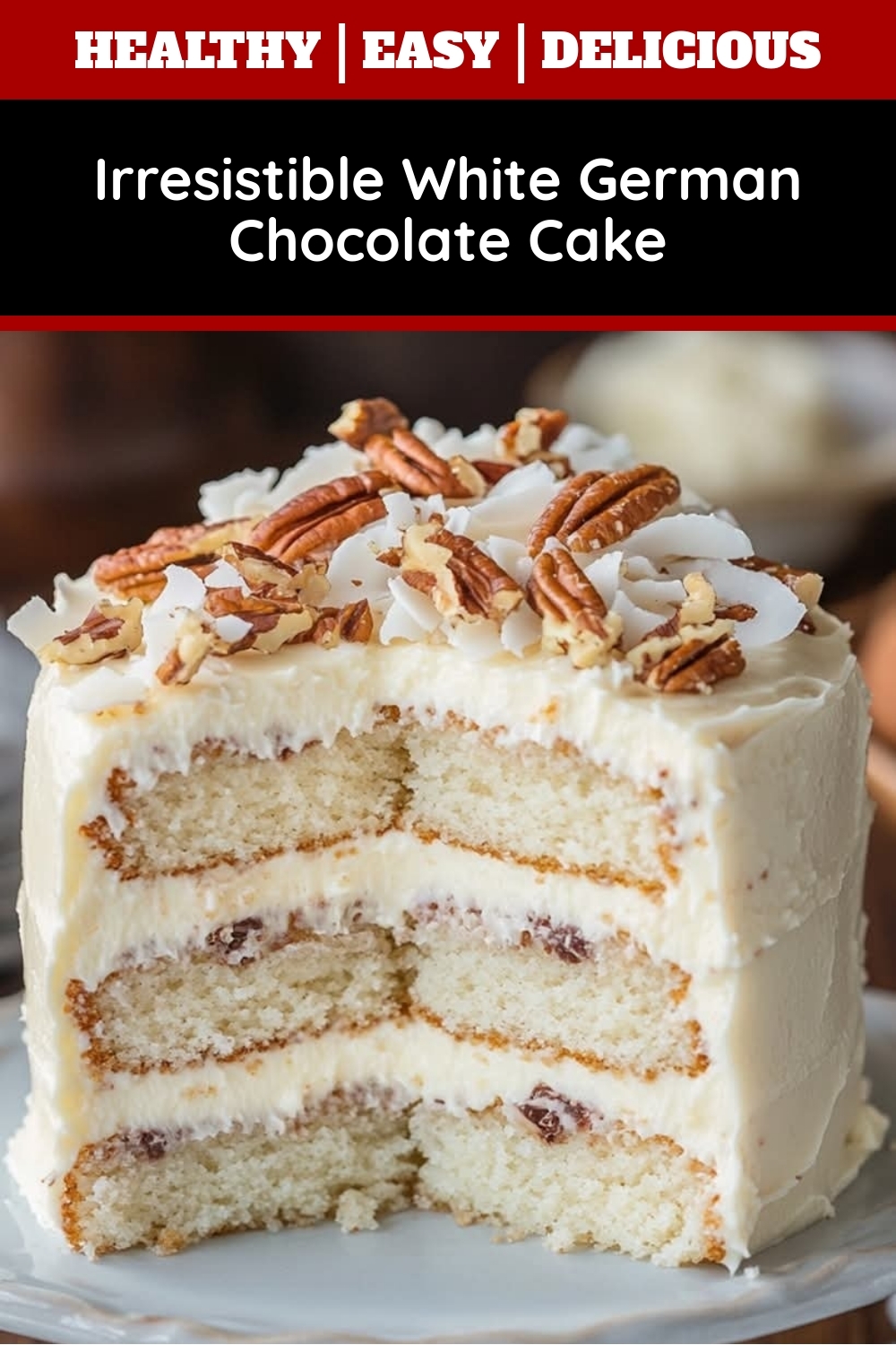 Yes, you can omit coconut if you prefer, but it will change the classic texture. For a similar crunch, try toasted almonds or pecans to keep the Irresistible White German Chocolate Cake deliciously nutty.