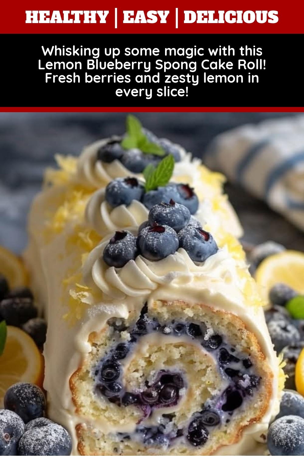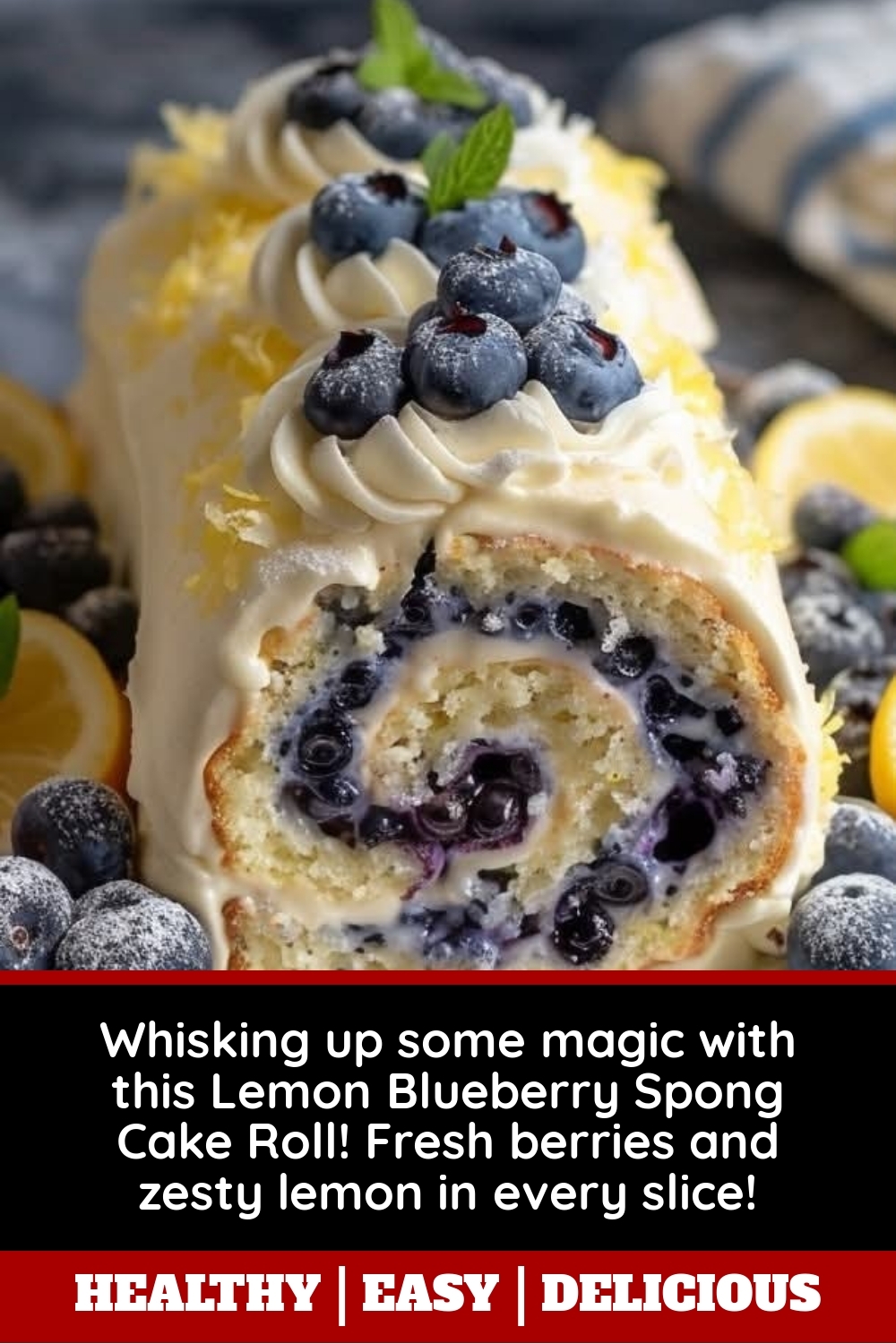 Whisking up some magic with this Lemon Blueberry Spong Cake Roll! Fresh berries and zesty lemon in every slice!