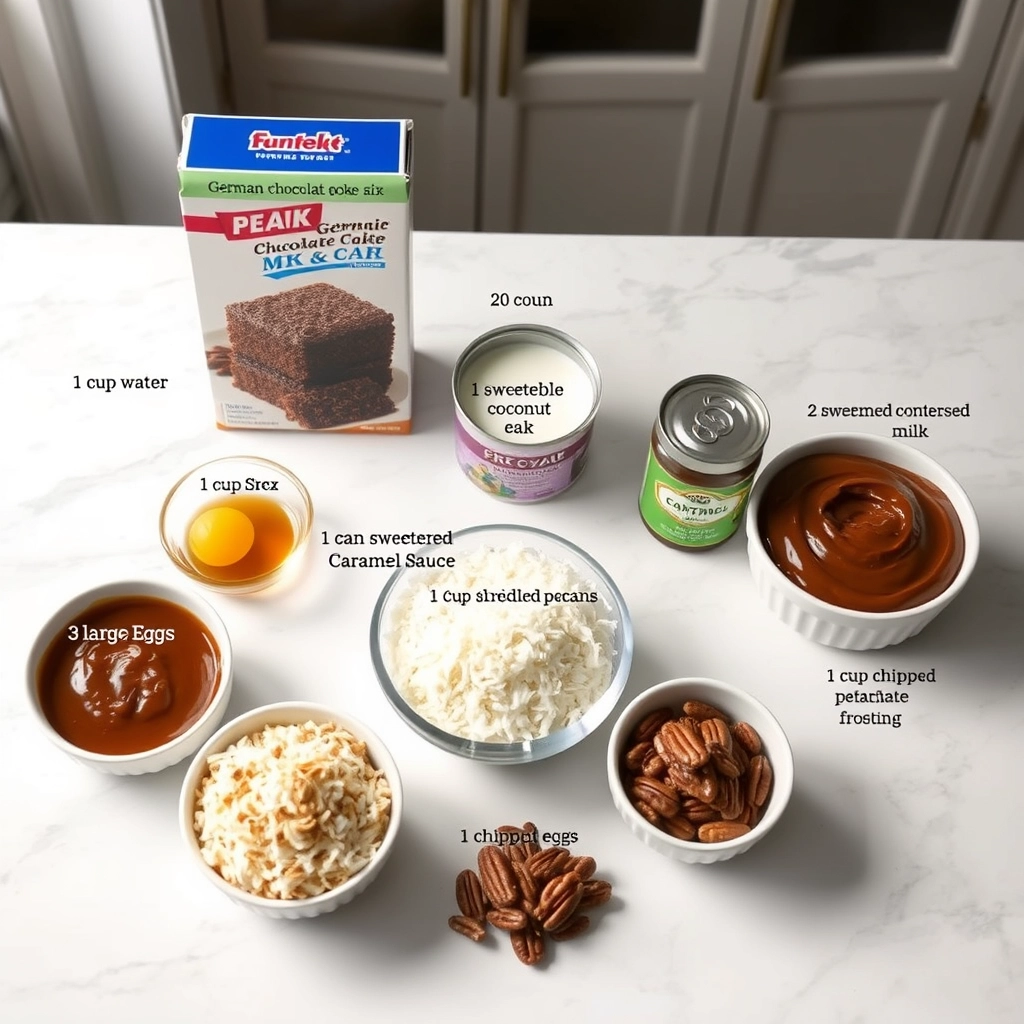 • 1 box German chocolate cake mix