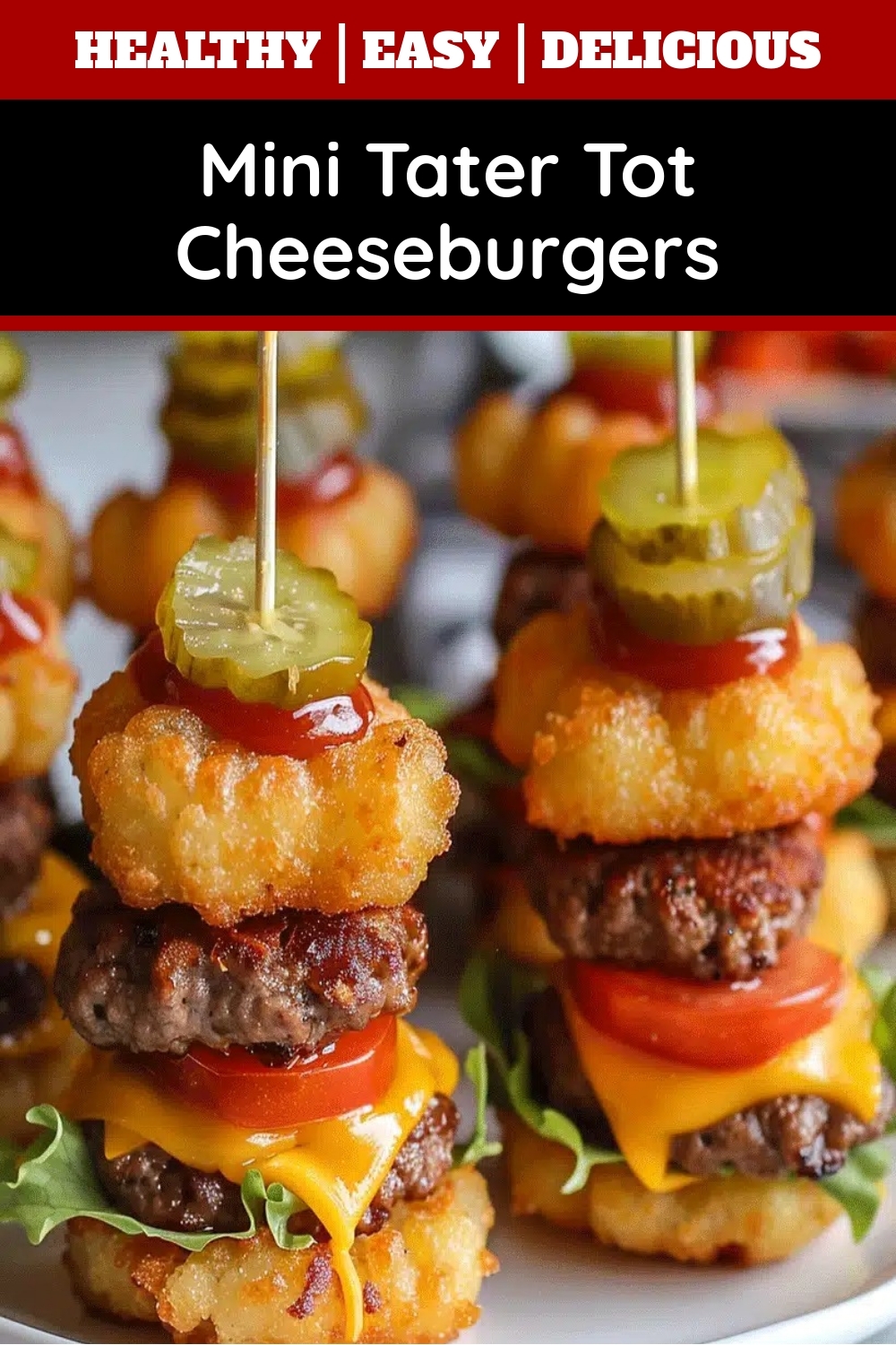 Mini Tater Tot Cheeseburgers are exactly what they sound like: savory ground beef patties and melty cheese sandwiched between golden tater tot “buns.” They’re a nostalgic nod to childhood favorites, yet sophisticated enough for grown-up gatherings. What makes them special? First, they’re incredibly versatile. Serve them as party snacks, game-day bites, or even a kid-friendly meal. Second, they’re easy to customize. Add pickles, ketchup, or a dash of hot sauce to suit your taste. Finally, they’re quick to prepare, especially if you use pre-made tater tots—perfect for busy cooks.