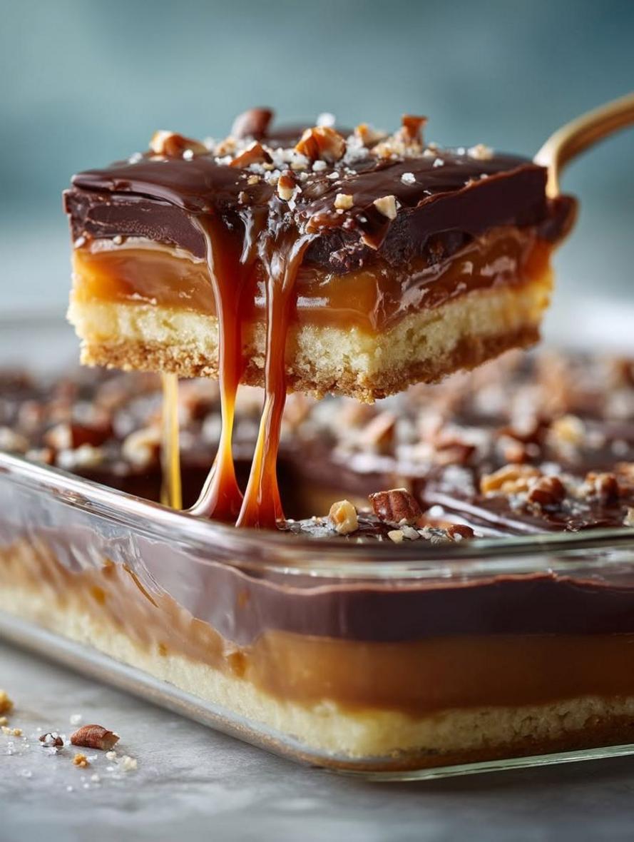 • Aroma: As you prepare this no-bake Millionaire’s Shortbread Lasagna, the scent of warm butter and brown sugar from the caramel fills the air, evoking cozy, comforting vibes. The chocolate layer adds a subtle cocoa fragrance that intensifies upon setting, making the kitchen smell irresistible. These aromatic notes are sure to draw everyone in for a taste.