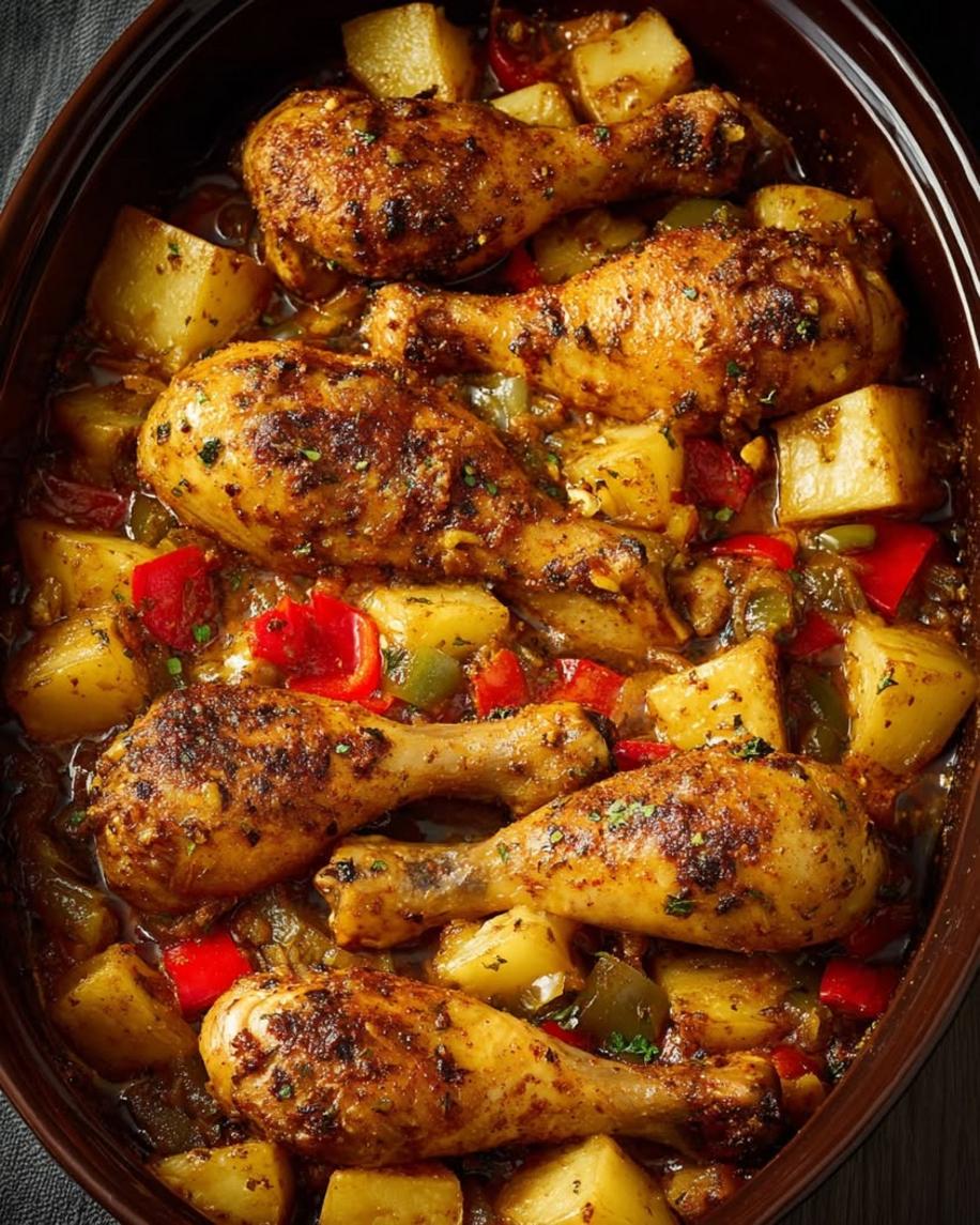 One-Pan Baked Chicken Drumsticks with Potatoes & Peppers
