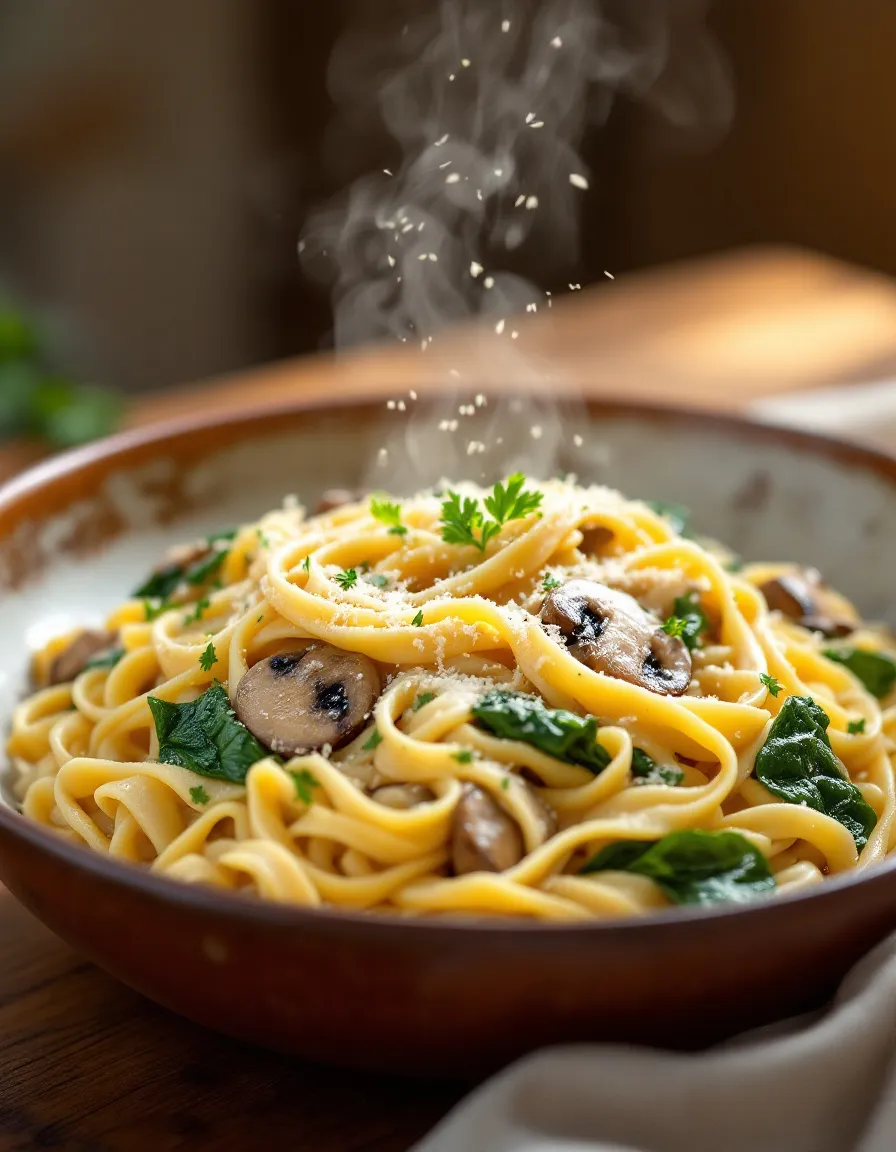- Texture: Creamy comfort from the sauce, tender pasta, and delightful bites of mushrooms and wilted spinach that add a pleasing mouthfeel.
