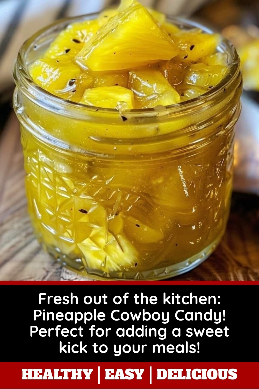 Fresh out of the kitchen: Pineapple Cowboy Candy! is a sweet and spicy candied pineapple treat, perfect for adding a kick to your meals. It combines juicy pineapple with a blend of sugar, spices, and a hint of heat for a unique flavor balance. Great as a snack, topping, or gift!