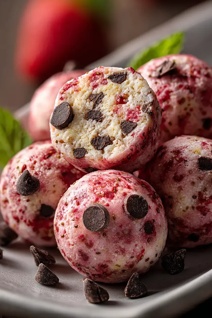 - Strawberry Cheesecake Protein Balls with Chocolate Chips: A Guilt-Free Snack Delight