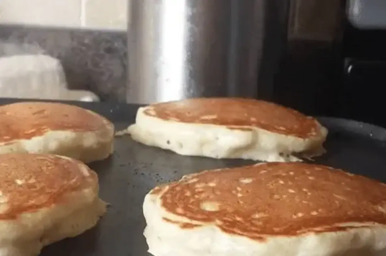 - Cook 1/2 cup portions on a buttered grill or pan over medium heat until bubbles form, then flip to brown the other side.
