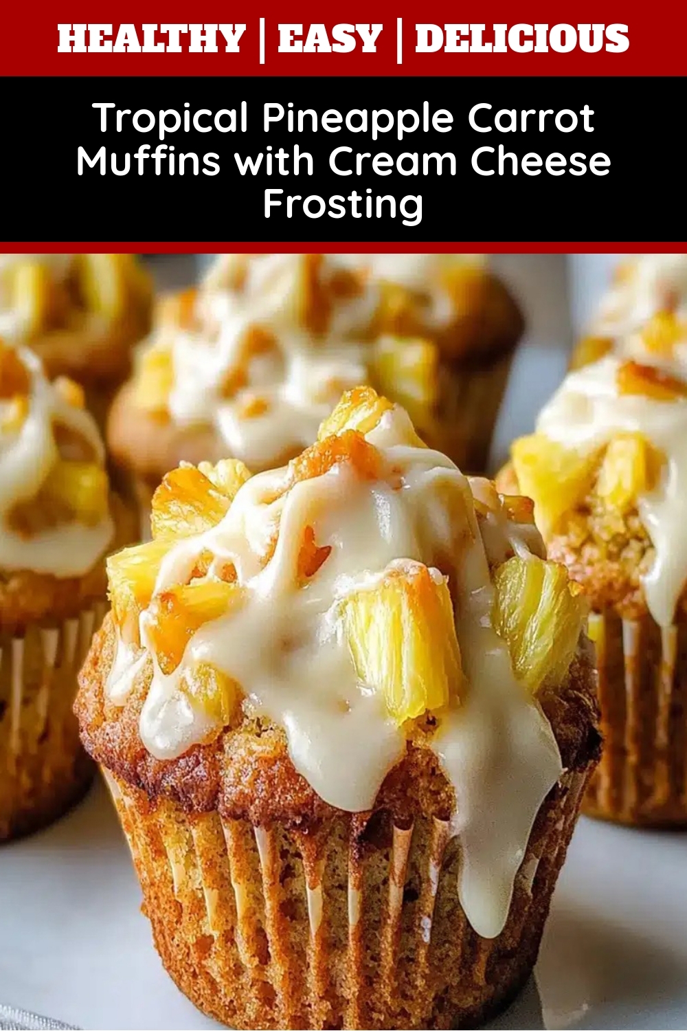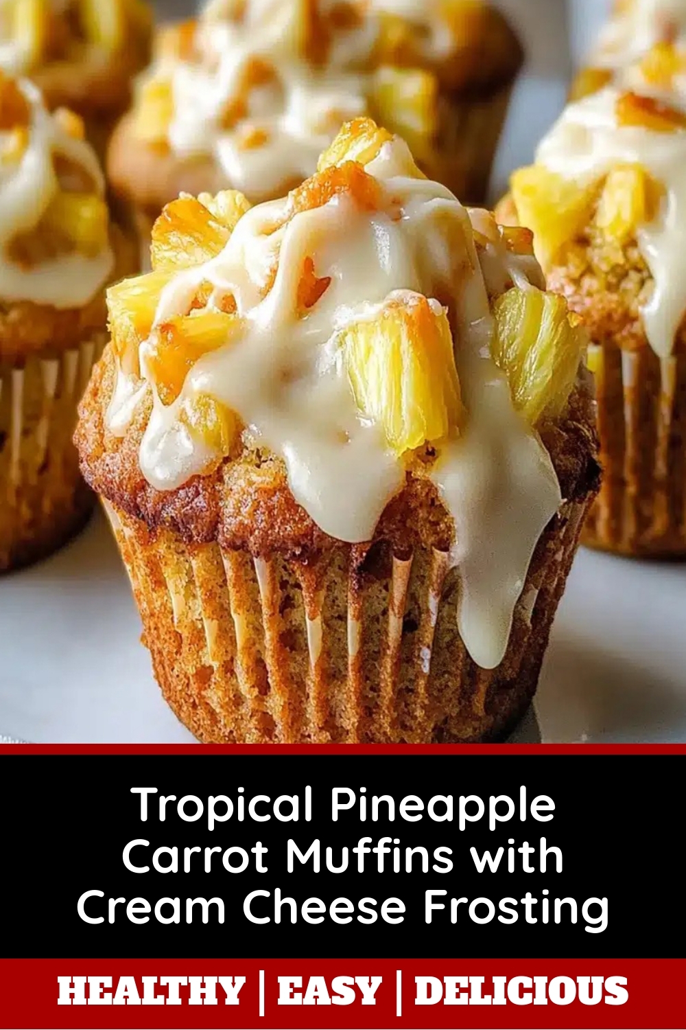 Moist and flavorful muffins packed with tropical pineapple and carrots, topped with a rich cream cheese frosting.